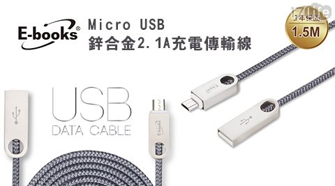 平均每入最低只要219元起(含運)即可享有【E-books】Micro USB鋅合金2.1A充電傳輸線(1.5M)1入/2入/4入,購買享1年保固!